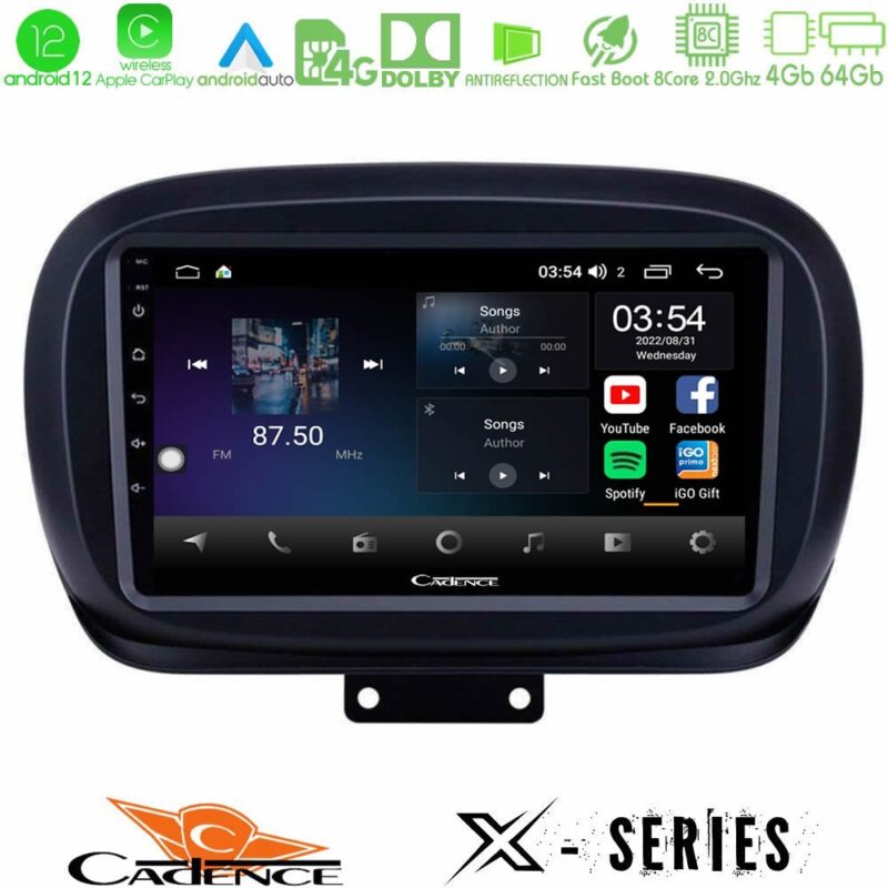 Cadence X Series Fiat 500X 8core Android12 4+64GB Navigation Multimedia Tablet 9″