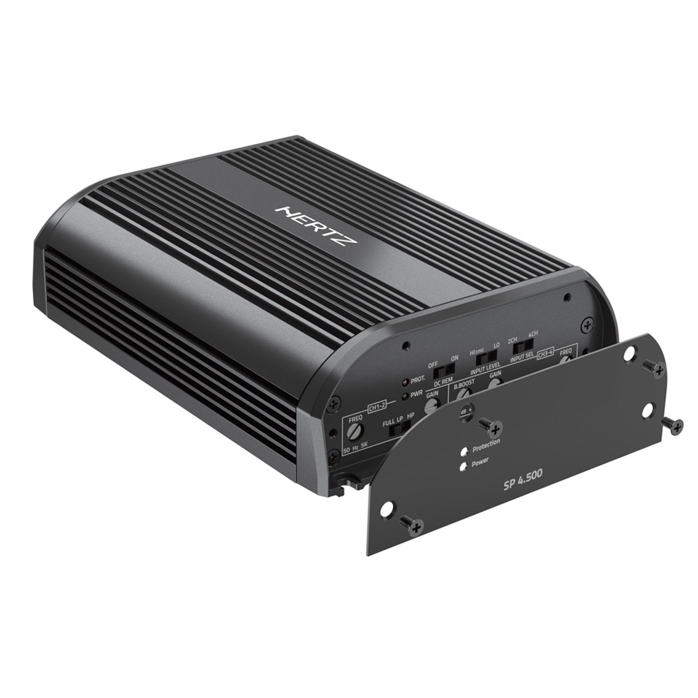 Ο SP 4.500 διαθέτει βαθμίδα εξόδου Hertz ADC (Advanced D-Class), που φτάνει έως και το 87% απόδοση και προσφέρει εντυπωσιακή βαθμολογία ισχύος 90 x 4 (4Ω) W RMS ή 300 W x 2 (4Ω) W RMS όταν γεφυρώνεται, με εξαιρετικά συμπαγές μέγεθος 192,7 (7,58) x 130 (5,1) mm (ίν.) x 49 (1,9). Όντας εξαιρετικά συμπαγής με εντυπωσιακή ισχύ, το SP 4.500 είναι η ιδανική επιλογή για εφαρμογές μοτοσυκλέτας και για κάτω από το κάθισμα σε σπορ αυτοκίνητα και εγκαταστάσεις πίσω από τα καθίσματα σε φορτηγά.