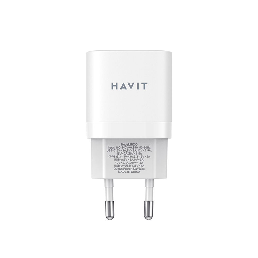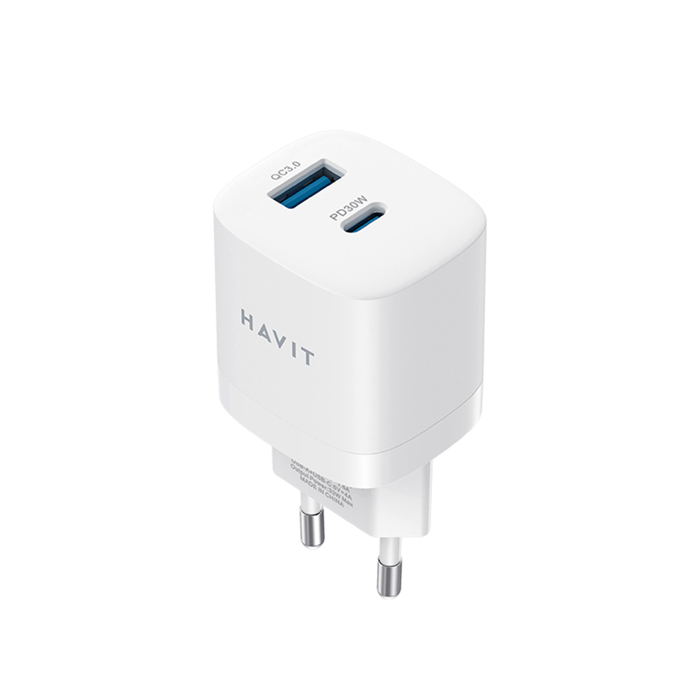 Φορτιστής Fast Charge Havit UC30 EU με USB και Type C White