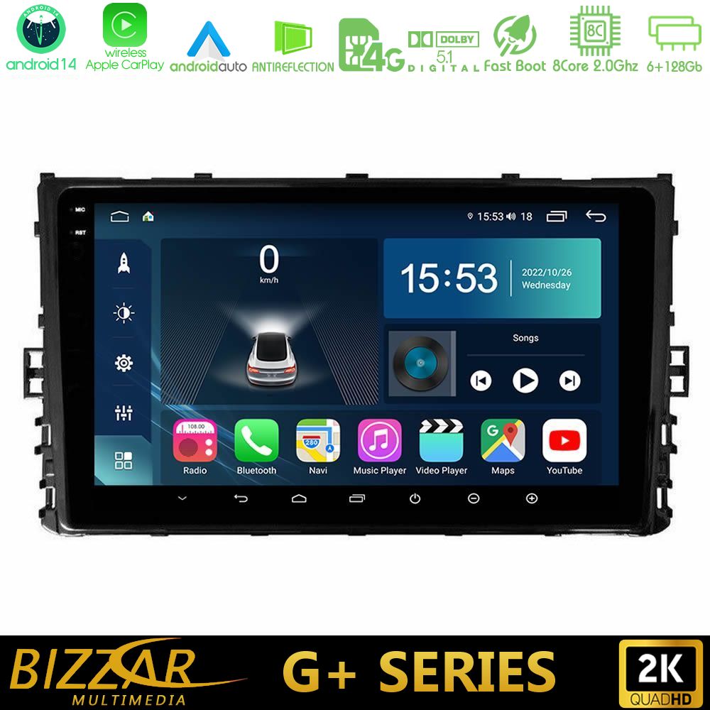 Bizzar G+ Series VW MQB 2017-> 8core Android12 6+128GB Navigation Multimedia 9″