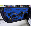 FOUR-BlueLabel is a 2.3mm thick butyl rubber damping mat with a really strong adhesive surface and a water and oil resistant aluminium coating.
