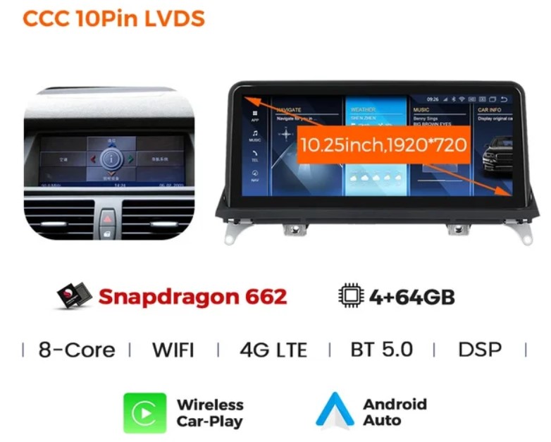10.25INCH OEM BMW X5 (E70) – X6 (E71) CCC 2006-2009 HD IPS Touch Screen