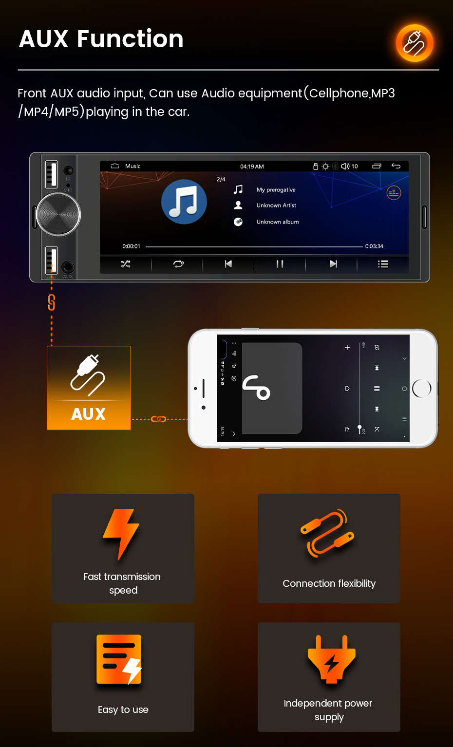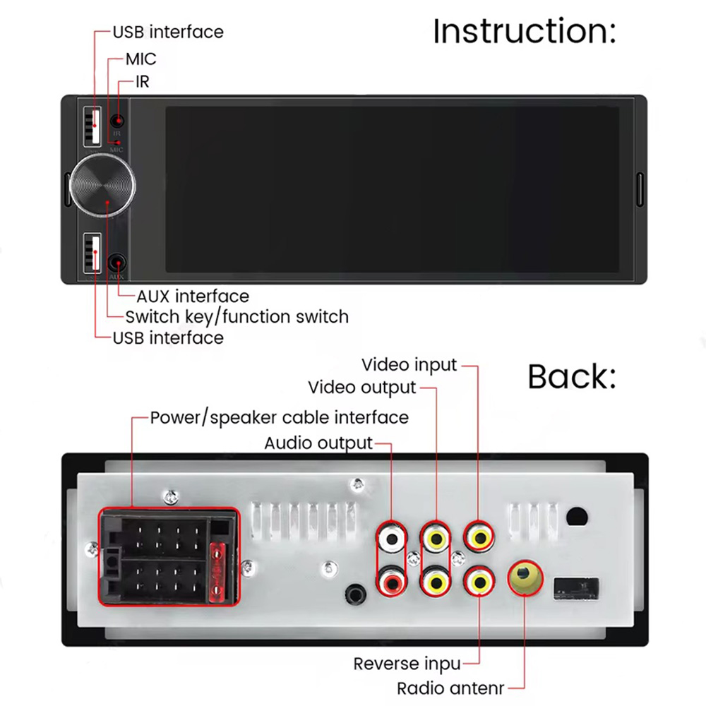 CARMEDIA CMU02MP NEW 1DIN 6.86” HD Touch Screen Multimedia Player
