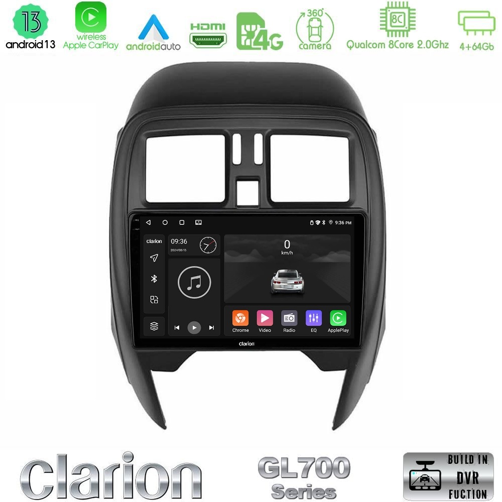 Clarion GL700 Series 8Core Android13 4+64GB Nissan Micra 2013-2016 Navigation Multimedia Tablet 9″ Με Carplay & Android Auto
