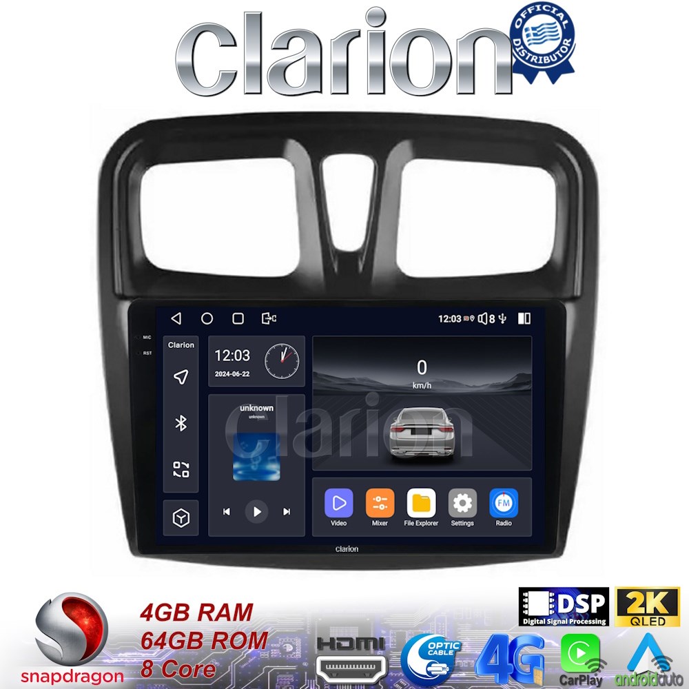 CLARION GL74557 Multimedia οθόνη συμβατή για Dacia Santero 2012 > 2019 με 8 πύρηνο επεξεργαστή με 4GB/64GB και 2K οθόνη