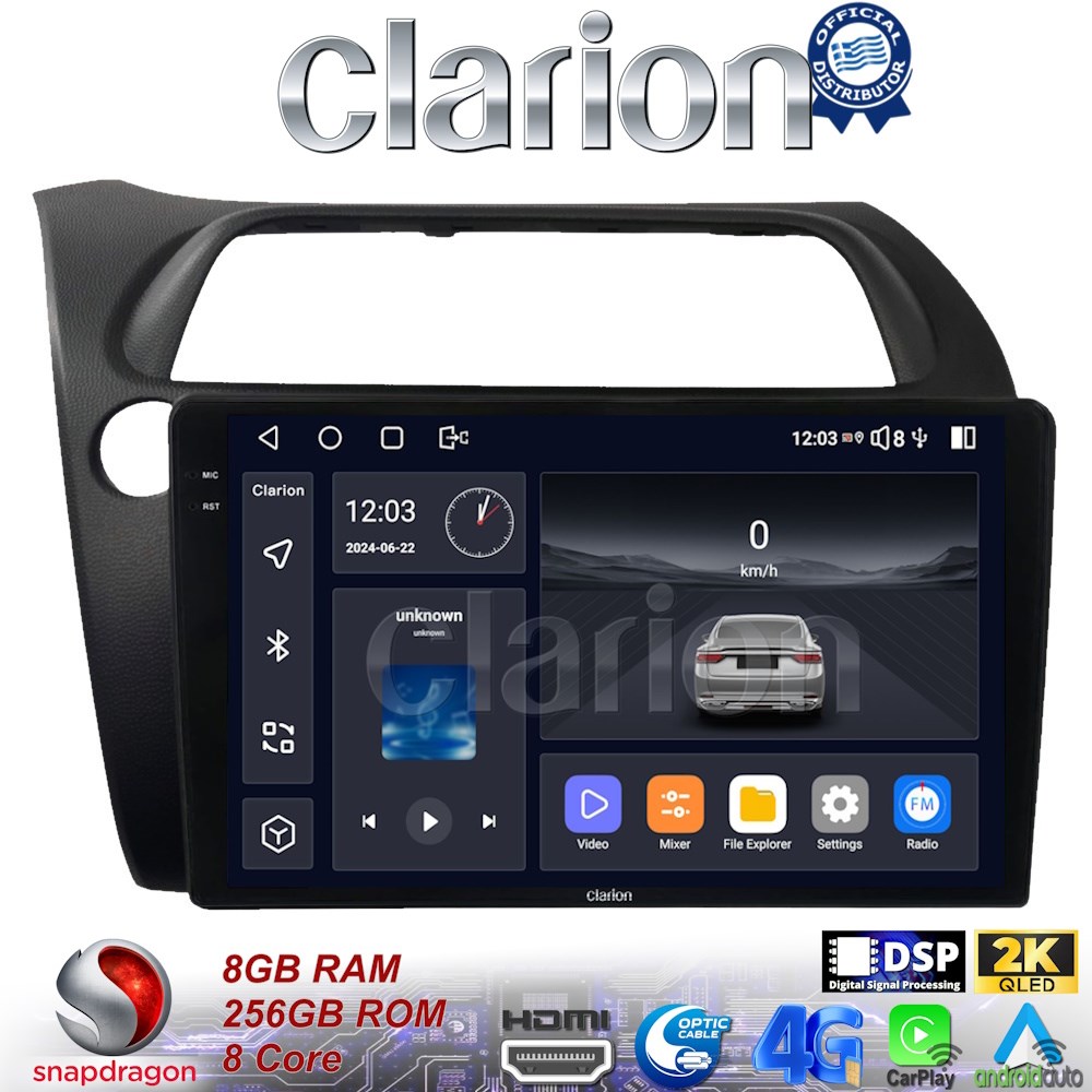 CLARION GL75744 Οθόνη OEM Multimedia Αυτοκινήτου για HONDA CIVIC 3/5D 2006-2012 (CarPlay/AndroidAuto/BT/GPS/WIFI/GPRS)