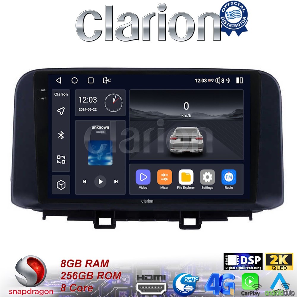 CLARION GL75961 Οθόνη OEM Multimedia Αυτοκινήτου για HYUNDAI KONA mod.2017> (CarPlay/AndroidAuto/BT/GPS/WIFI/GPRS)