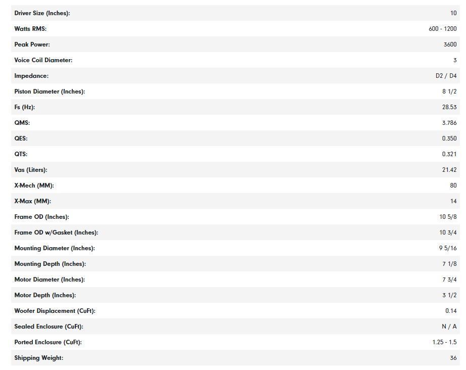 | Ported Enclosure (CuFt): | 1.25 – 1.50 |