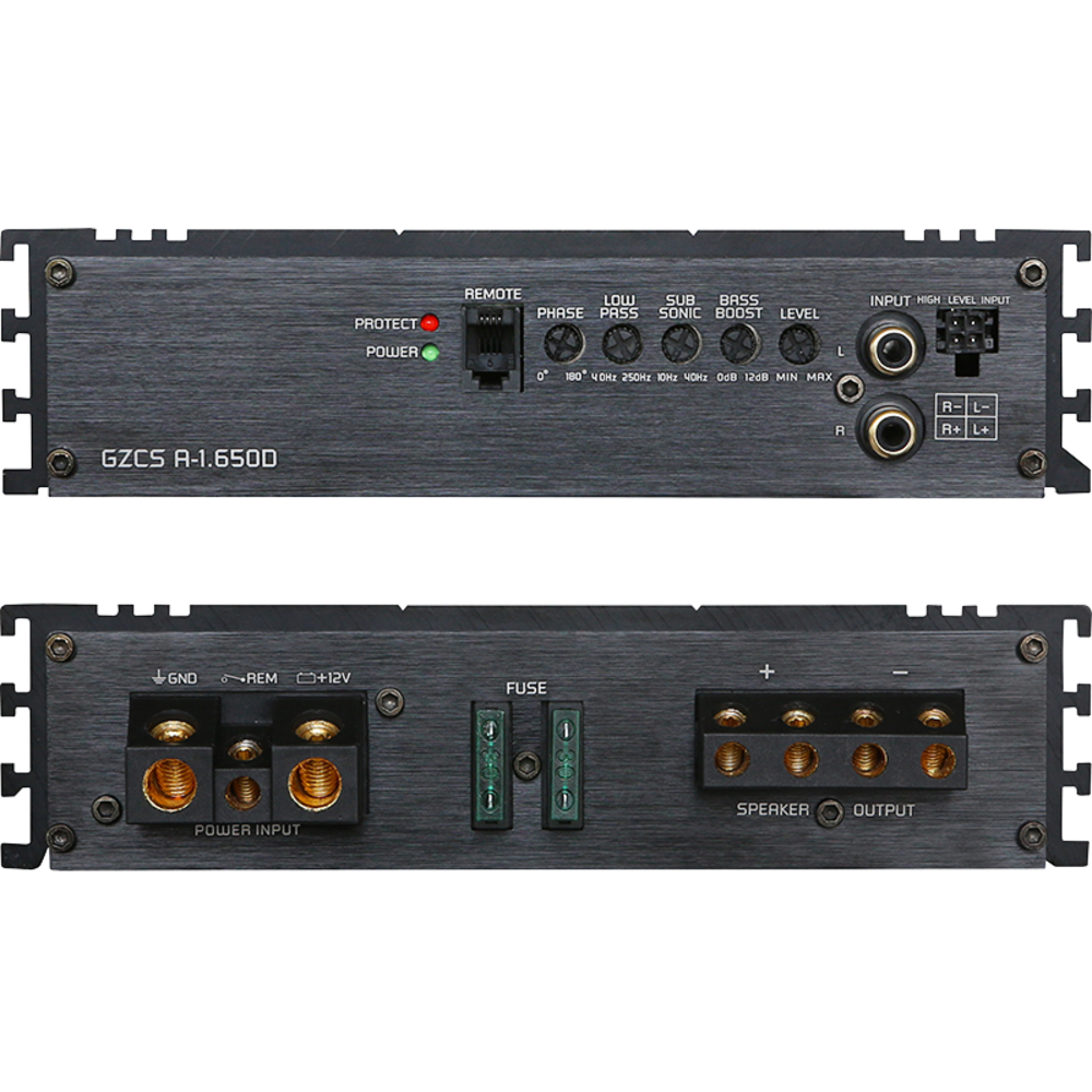 1-channel subwoofer amplifier with class D circuit, integrated active crossover and auto-on function