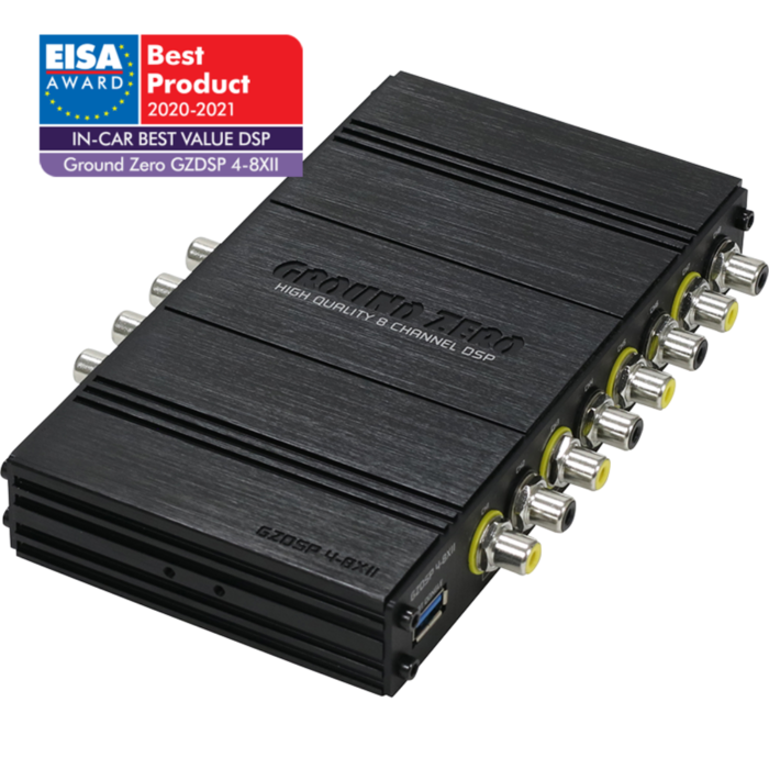 Digital signal processor with four channel high-level or RCA input, USB connection, optional remote control and auto-on function
