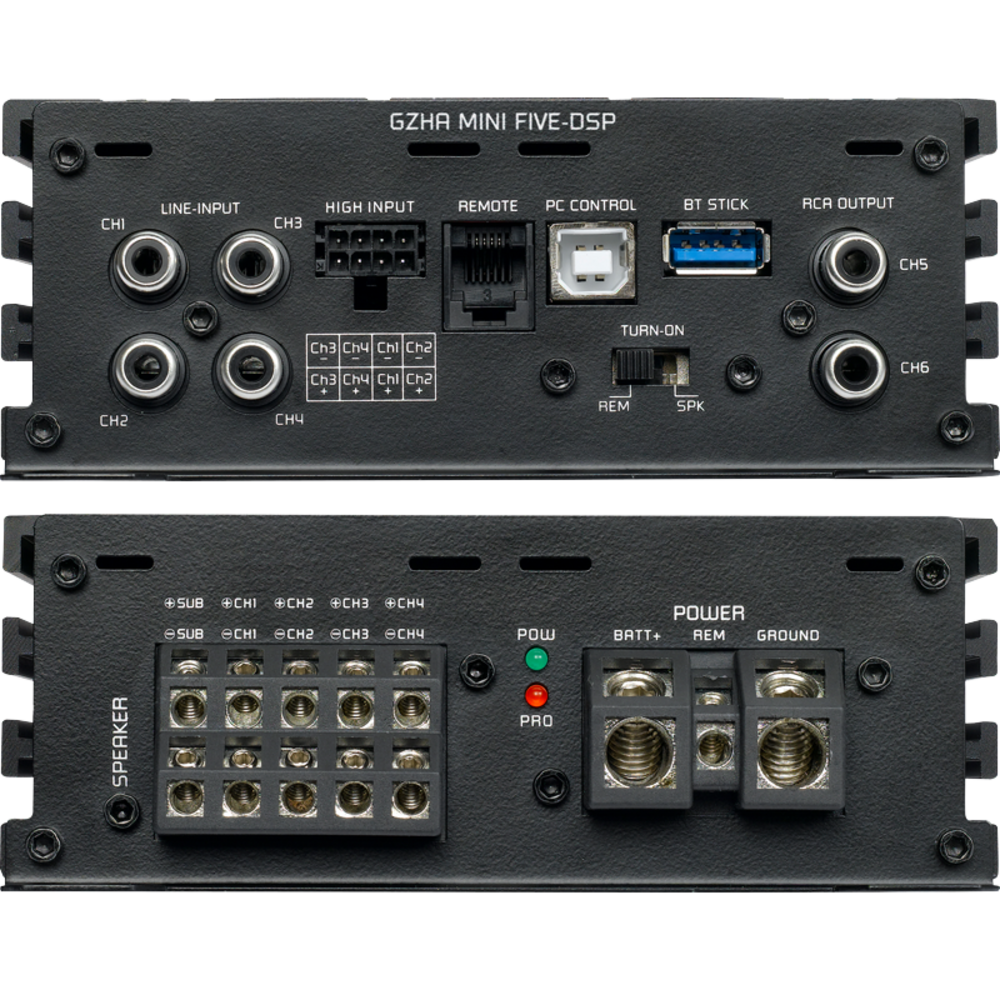 5-channel amplifier with high efficient class D circuit, integrated DSP and compact dimensions