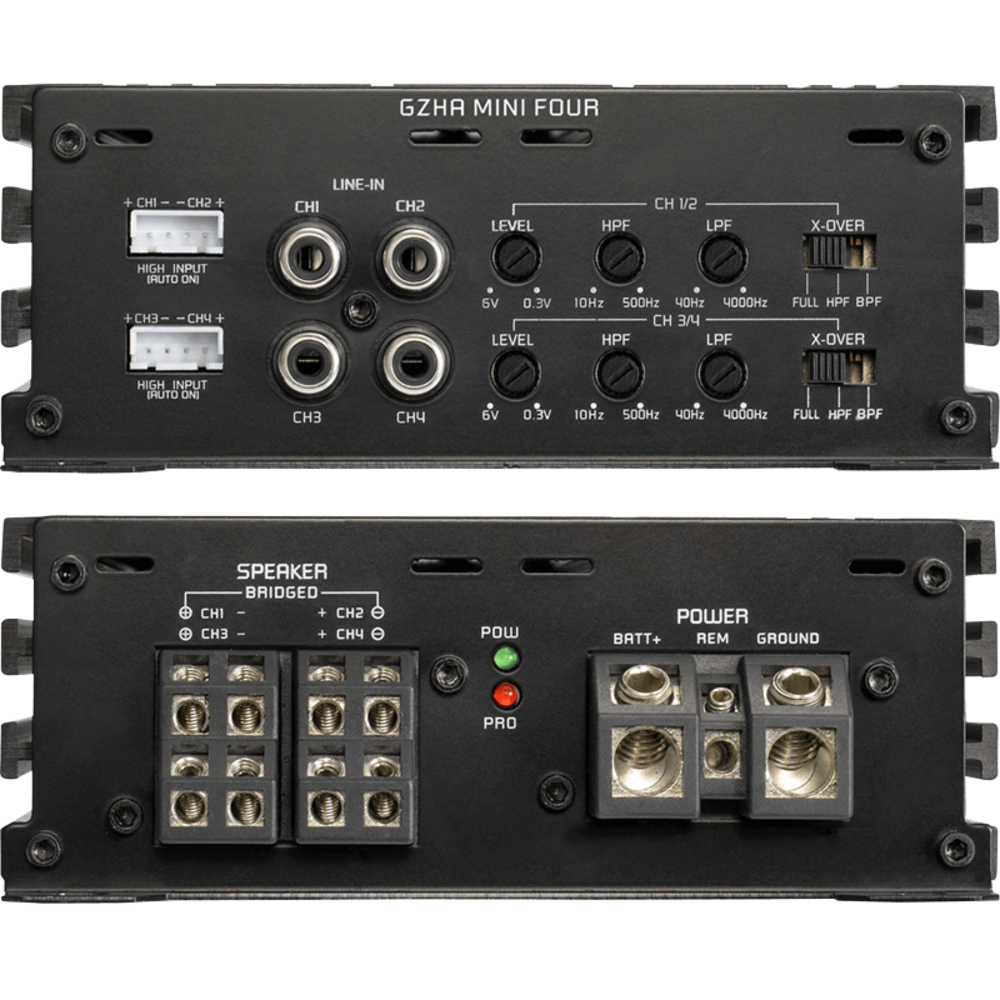 Compact sized 4-channel amplifier