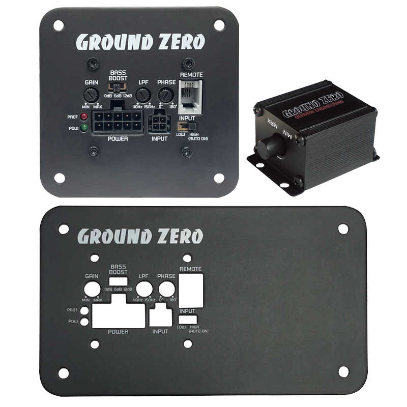 Active subwoofer-module for many GROUND ZERO subwoofer boxes 1-channel 2-ohm stable amplifier module with class D circuit, integrated active crossover and bass boost Class D technology Variable active crossover and bass boost Channels 1 Output Power (@ 4Ω) 170 Watts RMS Output Power (@ 2Ω) 280 Watts RMS Output Power (@ 2Ω) 330 Watts RMS Frequency Response 20 Hz – 200 Hz HPF / LPF / BPF ○ / ● / ○ Bass Boost / Phase switch ● / ○ High level input / Auto-on ● / ● Remote ● BIAS Setting ○ Linkmode ○ Dimensions (W x L x H) 85 x 126 x 85 mm / 3.35 x 4.96 x 3.35″