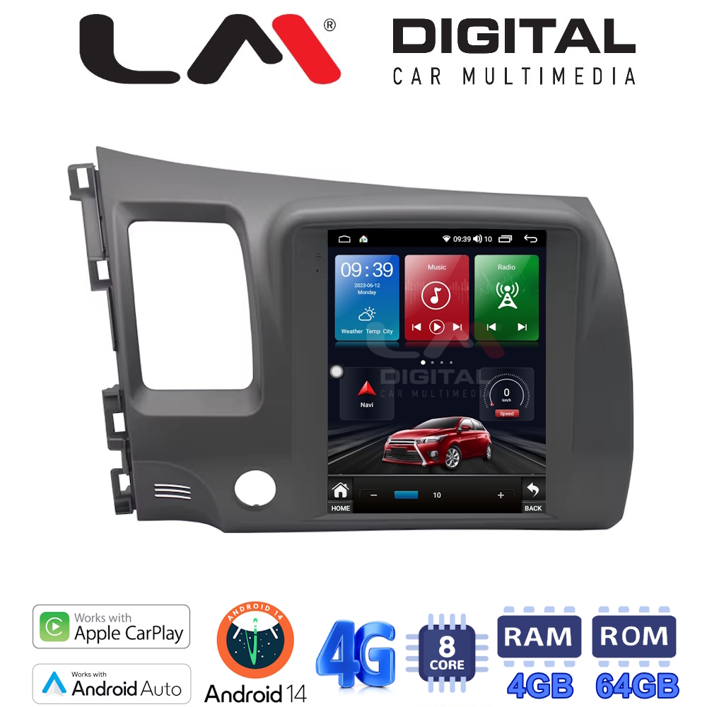 LM Digital – LM TC8644 GPS Οθόνη OEM Multimedia τυπου Tesla 9,7inch Honda Civic 4πορτο 2006 > 2012 (CarPlay/AndroidAuto/BT/GPS/WIFI/GPRS)