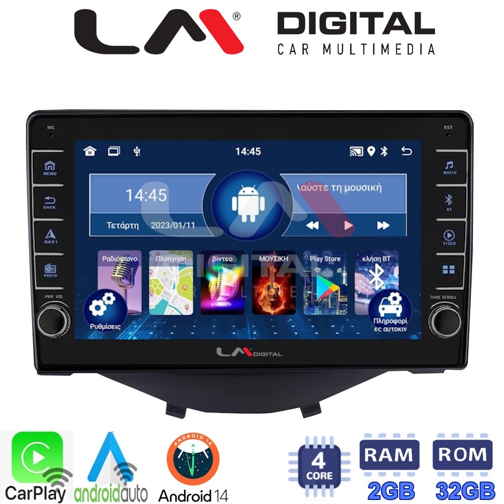 LM Digital – LM ZG4564B GPS Οθόνη OEM Multimedia Αυτοκινήτου για Toyota Aygo 2014 > Citroen C1 2014 > Peugeot 107 2014 > (CarPlay/AndroidAuto/BT/GPS/WIFI/GPRS)