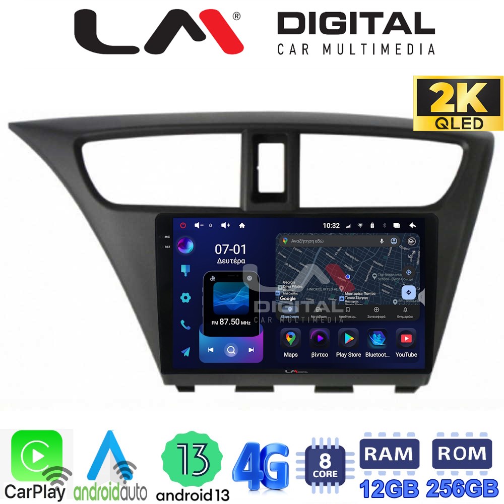 LM ZS8389 GPS Οθόνη OEM Multimedia Αυτοκινήτου για Honda Civic 2012 > 2016 (CarPlay/AndroidAuto/BT/GPS/WIFI/GPRS)