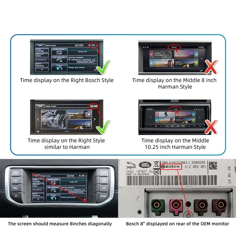 Συμβατό με Land RoverΙδανικό για Land Rover με οθόνη Bosch 8″, Αποφύγετε τις μη συμβατές οθόνες Harman, Απολαύστε απρόσκοπτη αναβάθμιση CarPlay Compatible with Land RoverPerfect Fit for Land Rover with Bosch 8″ Screen, Avoid Incompatible Harman Screens, Enjoy Seamless CarPlay Upgrade |