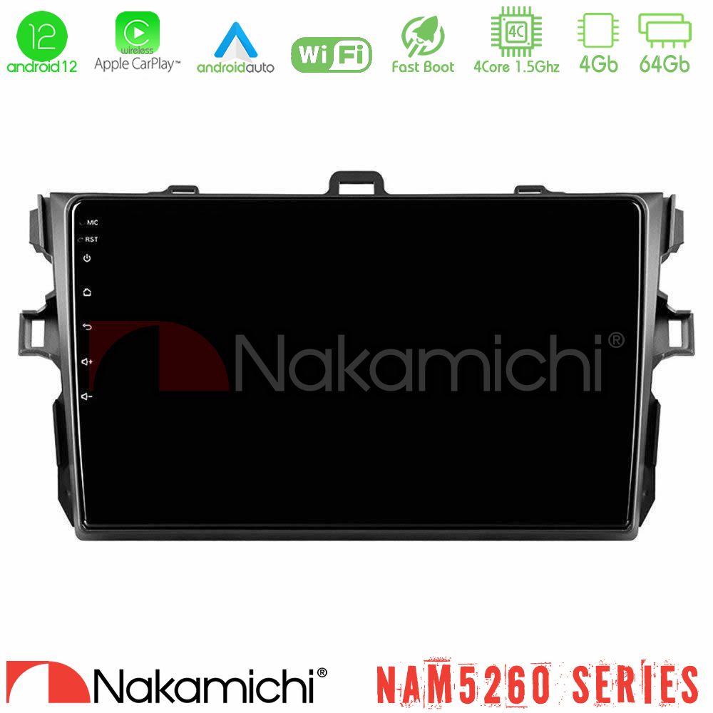 Nakamichi NAM5260 Series 4Core Android12 4+64GB Toyota Corolla 2007-2012 Navigation Multimedia Tablet 9″ Με Carplay & Android Auto