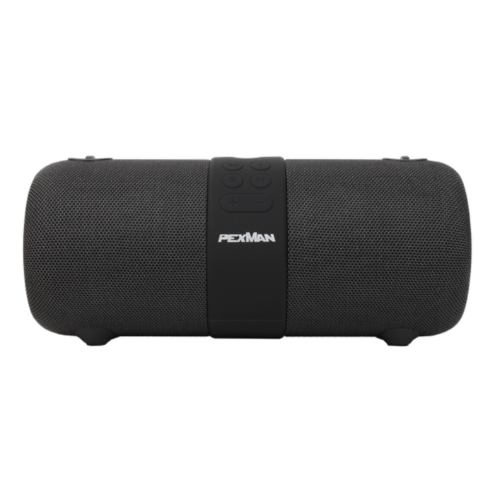 PM-10 has an high quality full-range speakers, and dual bass radiators, all delivering impressively rich and clear audio. Get that impressive sound in any situation! We have tuned the speakers sound profile to make it sound great in any situation! Gym, sauna, beach, terrace, kitchen, party or anywhere you want it. Crank up the fun with TWS stereo function (pair two Pexman PM-10 speakers to create stereo sound) Bring your speaker anywhere. Pool party, beach, rainfall, snow, or even sauna! Pexman PM-10 is IPX6 splash proof and can survive in many tough situations. The speaker has a durable shoulder strap, so it′s easy to carry around. We have added cool light effect to each side of the speaker to maximise the ″party effect″ ( you can also turn the lights off if you want ). Specifications: Bluetooth version: V4.2+BR Speaker Size: 3 inch*2 Amplifier output: 10W*2, 4Ω RMS Battery Capacity: 3.7V, 3600mAh Play Time: up to 12hours depending volume Frequency Response: 59Hz-20kHz Bluetooth connecting range: 10m IP rating: IPX6 Two wireless stereo ( link two speakers to get left and right channel seperation ) Boost mode ( more dynamic sound ) Product size: 283(L) *123(W) * 126 (H) mm Package Contents: ● 1xPortable Bluetooth speaker ● 1xCharging cable ( USB-C -) ● 1xAudio cable ● 1xUser manual ● 1xShoulder strap
