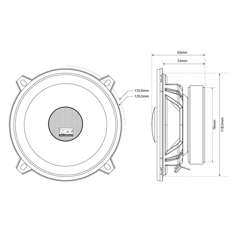 5.25“ (13cm) 70W RMS 4Ω 2-way coaxial speakers with silk dome neodymium tweeter