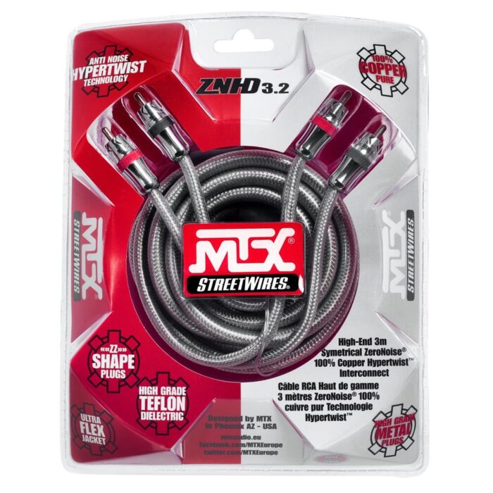 The MTX RCA cables  ZNHD3.2 (3m) ZNHD1.2 (1m) are certainly the best RCA cables on the market. They boast an incredible list of technologies and exceptional build quality for high-end hi-fi performances. They are built with the new Z shape metal plugs for an incredible contact quality. The protection against noise is further enhanced compared to ZNX. We are using here a triple protection with Teflon dielectric. More is just impossible. The flexibility of its cable and the small size of the RCA plugs make it easy to install.